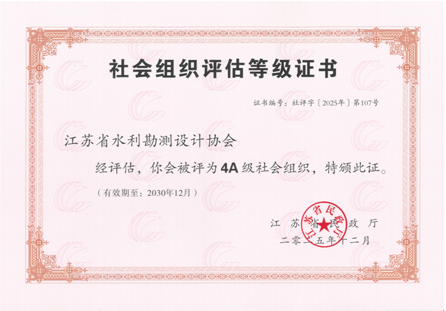 社会组织等级评估从党建工作、基础条件、内部治理、工作绩效、社会评价、综合信息等多维度对协会工作开展的系统、客观、全面的评估。经资格审查、专家初评审委员会终审及社会公示等环节,江苏省水利勘测设计协会凭借扎实的工作基础与创新的服务模式脱颖而出,成为全省水利行业领域4A级行业协会。